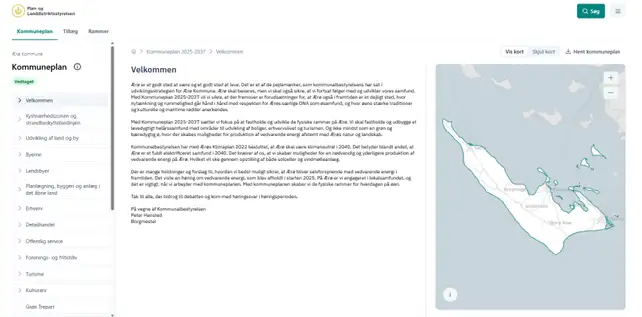 For at se et eksempel på en fuldt digital kommuneplan i Plandata.dk, kan man gå ind på Ærø Kommunes kommuneplan. Velkommen | Kommuneplan 2025-2037.