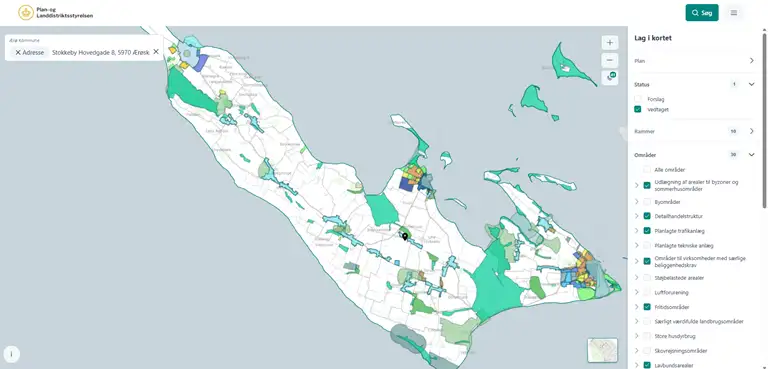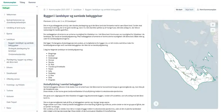 Hvis du ikke deltog i webinaret, eller hvis du vil gense eksempler på den digitale kommuneplan, kan du se et eksempel i Plandatas løsning, blandt andet Ærøs kommuneplan https://kommuneplaner.plandata.dk/kommune/0492/kp/11902114/emne/11939096.